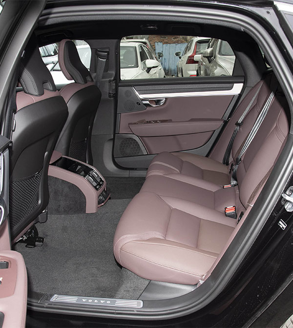 The car measures 5090 mm in length, 1879 mm in width, and 1444 mm in height, with a wheelbase of 3061 mm. Thanks to its long wheelbase, the rear seat area offers generous legroom, fitting for an executive sedan. The Volvo S90 trunk space provides 436 liters of cargo capacity, ideal for business or family travel.